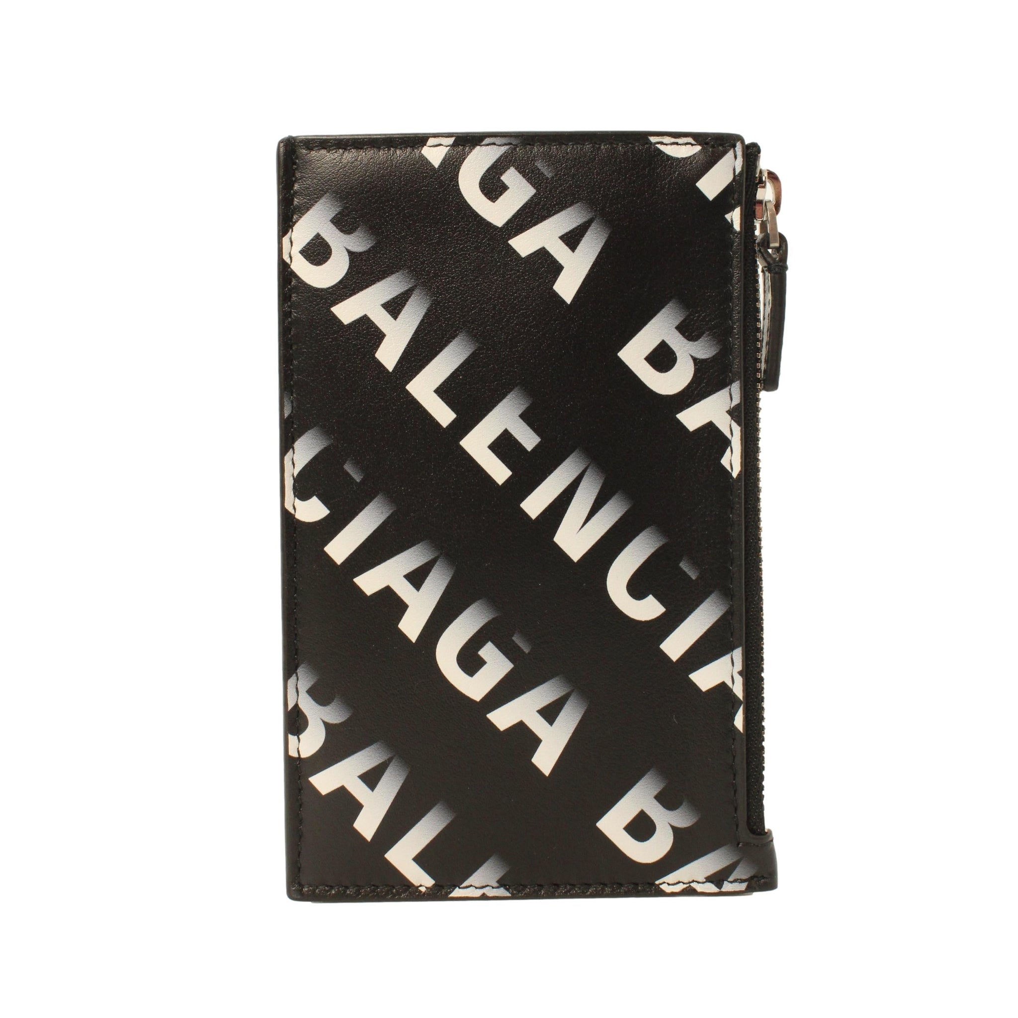 Balenciaga Black Leather Gradient Logo Small Zip Card Wallet